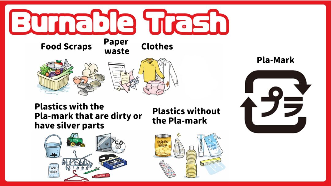 Plastic food containers from convenience stores are also often considered burnable trash if they are dirty.